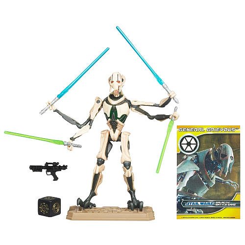 Star Wars Saga, Each 3.75â? 2012 Star Wars Movie Legends figure features multiple points of articulation, weapons/accessories, and a nameplate base. The Episode III General Grievous is equipped with four lightsabers. Harvested from among the horrific wreckage of a staged shuttle accident, General Grievous is a cyborg composed of a duranium alloy body with synthskin-bagged vital organs and LX-44 robotic legs. Designated the Supreme General of the Droid Army, Grievous, disgusted by his new body, exacts his brutal vengeance by slaughtering members of the Jedi Order and collecting his victimsâ?TM lightsabers as trophies.